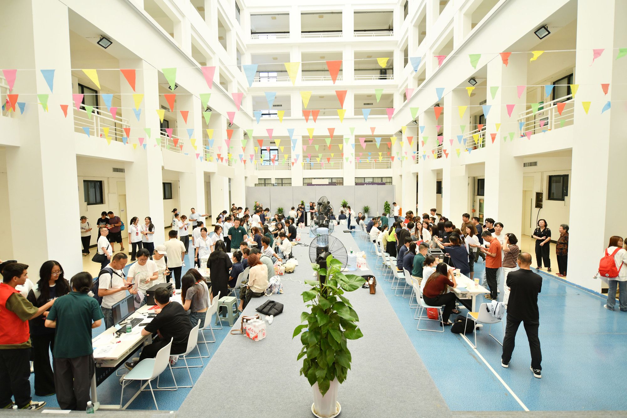 学校特别做好了防暑降温工作。在报到现场,设置了防暑降温服务点,准备了移动空调扇,为新生和家长免费提供饮用水、藿香正气水、清凉油等防暑用品。报到处提前开启空调,为大家营造了一个凉爽舒适的环境,得到了新生和家长们的一致好评。