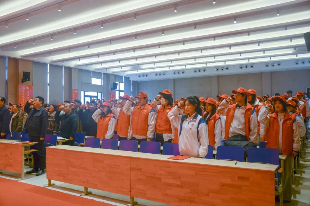 全体志愿者庄严宣誓。“我志愿,成为光荣的志愿者,践行奉献、友爱、互助、进步的志愿精神,响应党和国家号召,奉献社会,服务人民,传递真善美,传播正能量,为强国建设、民族复兴贡献智慧和力量!”铿锵有力的誓言响彻会场,字字千钧,既是全体志愿者践行雷锋精神的郑重承诺,也是新时代青年勇担使命的坚定决心。