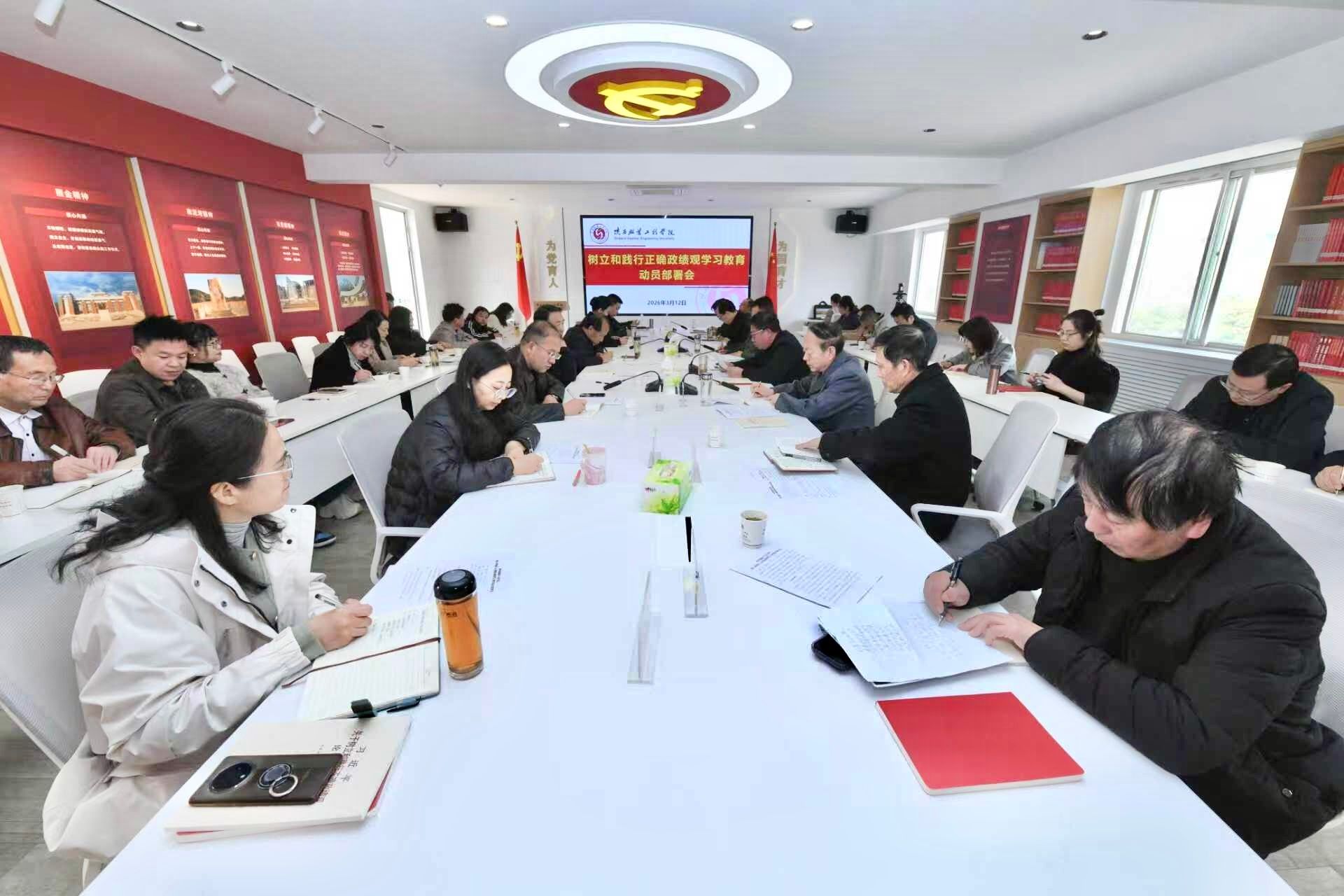 陕服新闻网讯(李文斌)3月12日下午,我校在行政楼326会议室召开树立和践行正确政绩观学习教育部署会,认真学习习近平总书记关于树立和践行正确政绩观的重要论述精神,传达学习中央、省委有关文件和会议精神,对学校学习教育工作进行动员部署。