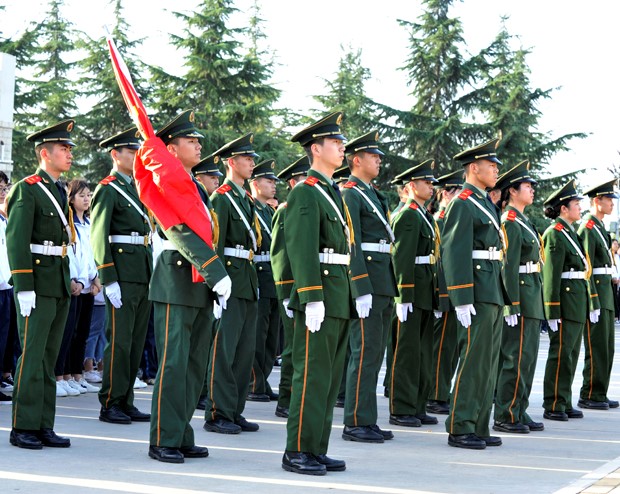 胡鸿晓主持。一声令下,英姿飒爽的国旗护卫队员护送鲜艳的五星红旗进场。在庄严的《国歌》声中,五星红旗冉冉升起,迎风飘扬。现场的每一个人向国旗行注目礼,表达对祖国无限的热爱和崇高的敬意。