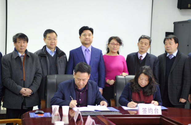旷岚代表英国国际教育联盟,张义明代表陕西服装工程学院签订了合作协议。