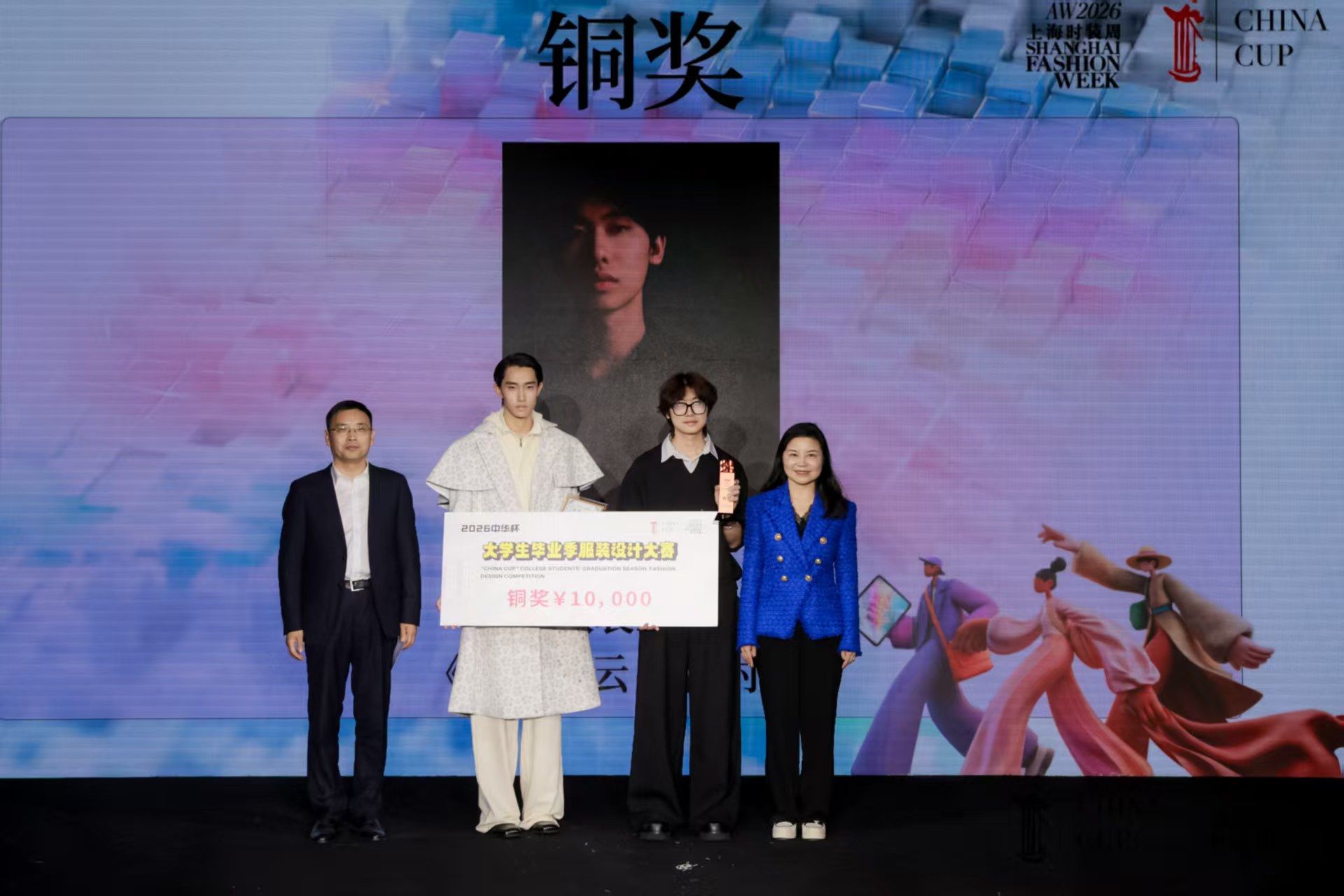 陕服新闻网讯(服装学院)3月27日,2026“中华杯”大学生毕业季服装设计大赛决赛暨颁奖典礼在上海永安百货盛大举行。我校服装学院学子孙铭麒凭借扎实的设计功底与创新的作品理念,从全国众多高校选手中脱颖而出,荣获铜奖,展现了我校服装与服饰设计专业的育人成果与人才培养质量。